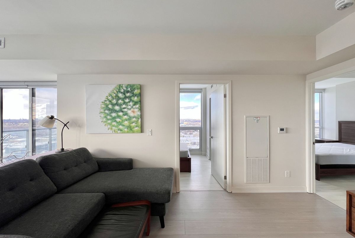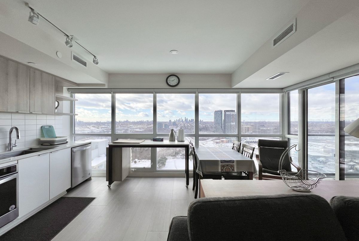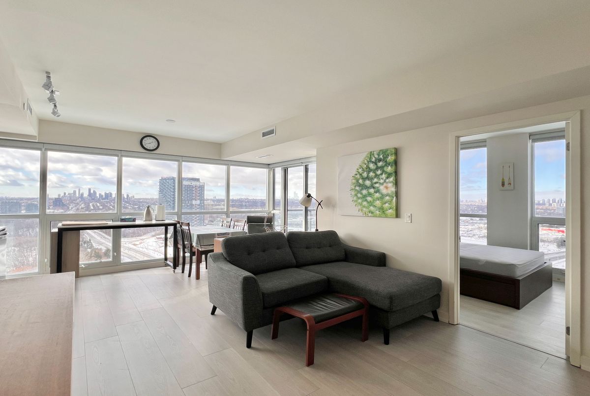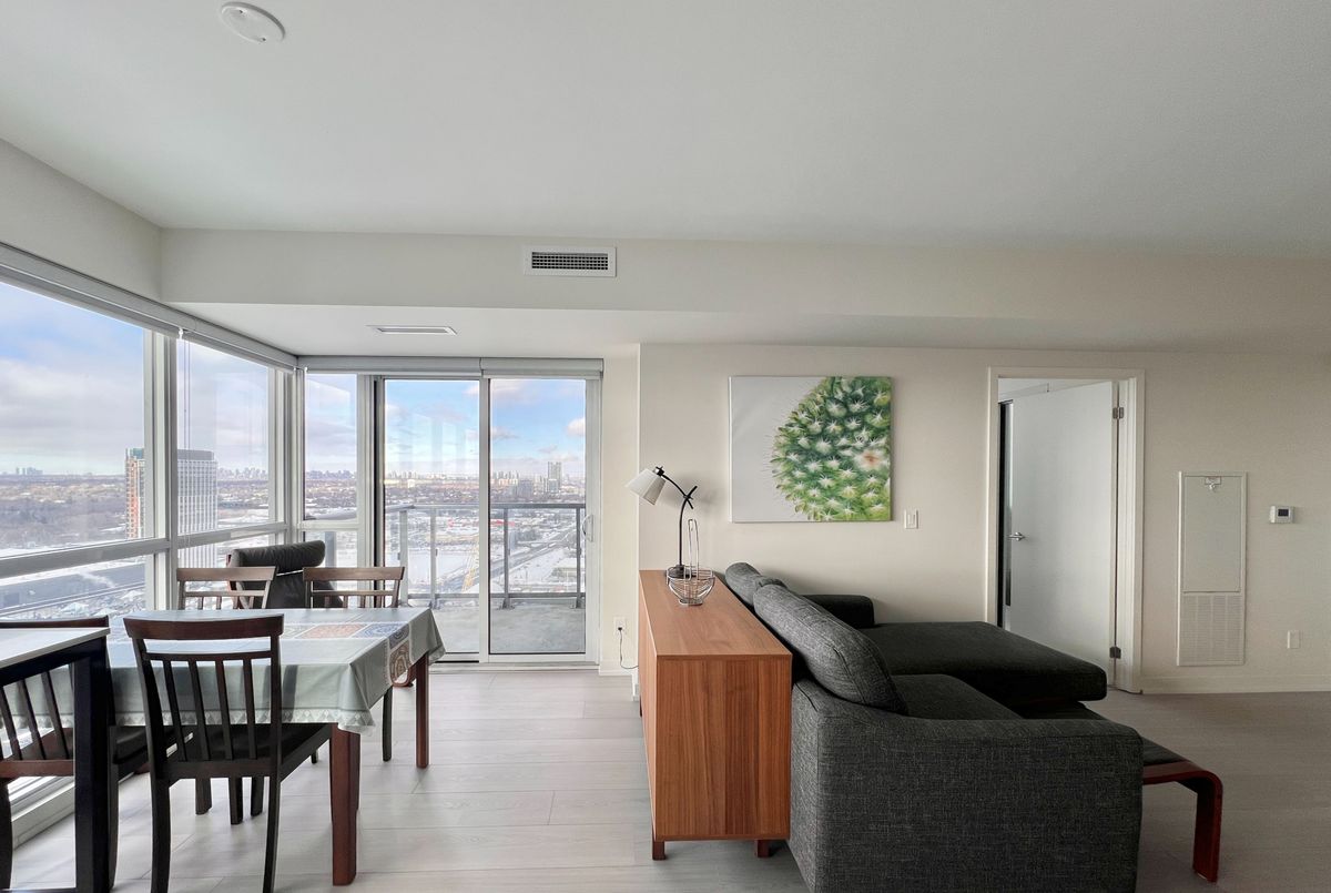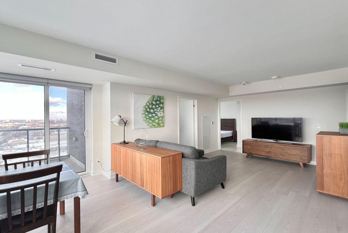 Beautifully furnished and well-maintained 2-Bedroom, 2-Bathroom corner unit in Sonic Condos - located at Eglinton and Don Mills and just steps to the upcoming Eglinton LRT! This spacious and sun-filled unit is close to 800-sf and features modern finishes throughout and expansive floor-to-ceiling windows that bring in lots of natural light throughout the day. Enjoy fantastic amenities which include 24-hour concierge, a well-equipped fitness centre and yoga room, party room and lounge, hobby room, study area, guest suites, visitor parking, and more. An incredibly convenient location for drivers and transit riders - you're a quick 10-minute walk to Superstore and GoodLife Fitness, and just minutes by car to Shops at Don Mills (restaurants, supermarkets, shopping, and movie theatre), Oomomo, C&C Supermarket, Costco, and Sunnybrook Hospital and Sunnybrook Park. Easy access to DVP and future LRT. One parking spot and one locker included. Live with ease in a professionally-managed unit and move in immediately!