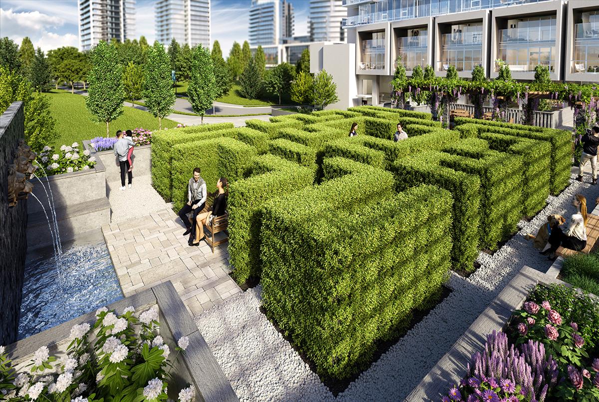 Saisons, the most luxurious condominium in North York, featuring an 8-acre central park and private formal gardens, luxury finishes featuring Miele integrated appliances, large outdoor living rooms, automatic car wash, and an 80,000 square-foot MegaClub.